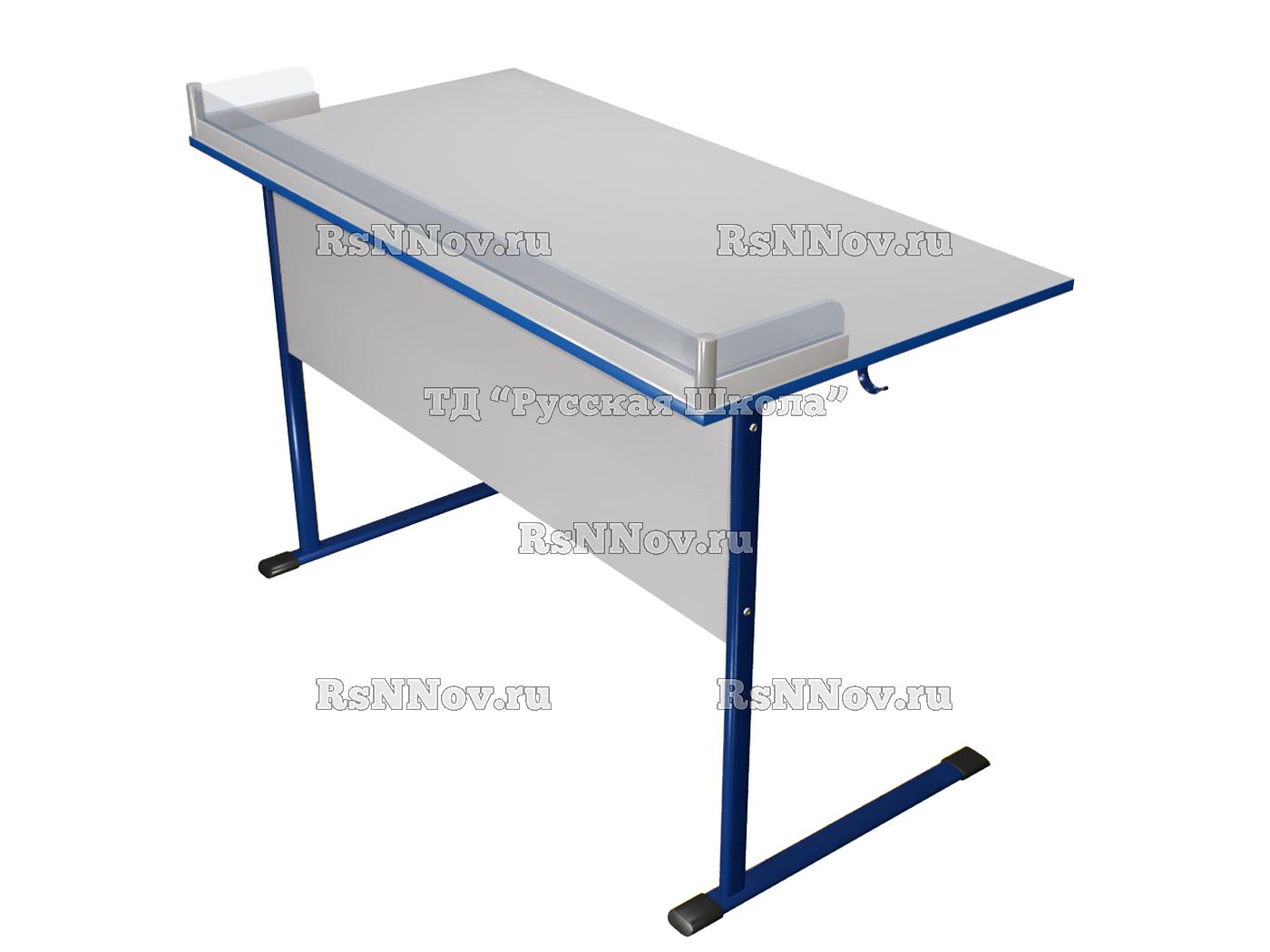 Столешница стола изготовлена из ДСП толщиной 18 мм с пластиковым покрытием. Торцы обработаны противоударной скругленной кромкой ПВХ толщиной 2 мм. На лицевой стороне столешницы и экране стола ученического отсутствуют выступающие части фурнитуры. Каркас стола ученического изготовлен из металлической трубы плоскоовального профиля 40х20 мм и окрашен ударо-износостойкой порошковой краской.
