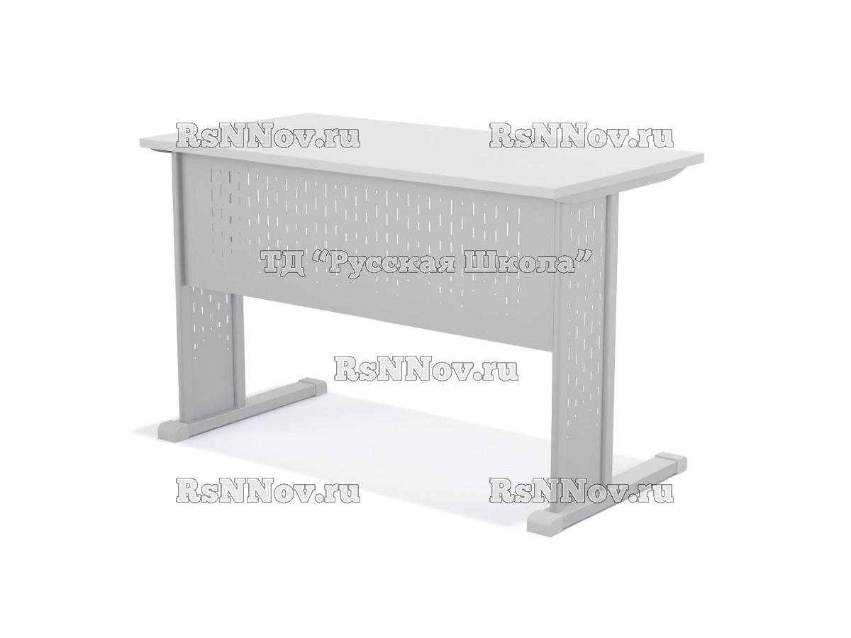 Стол учителя на металлокаркасе плоскоовальной трубы 40х20 и 60х30 с перфорированным экраном и вставками (тип перфорации «Дождик»)