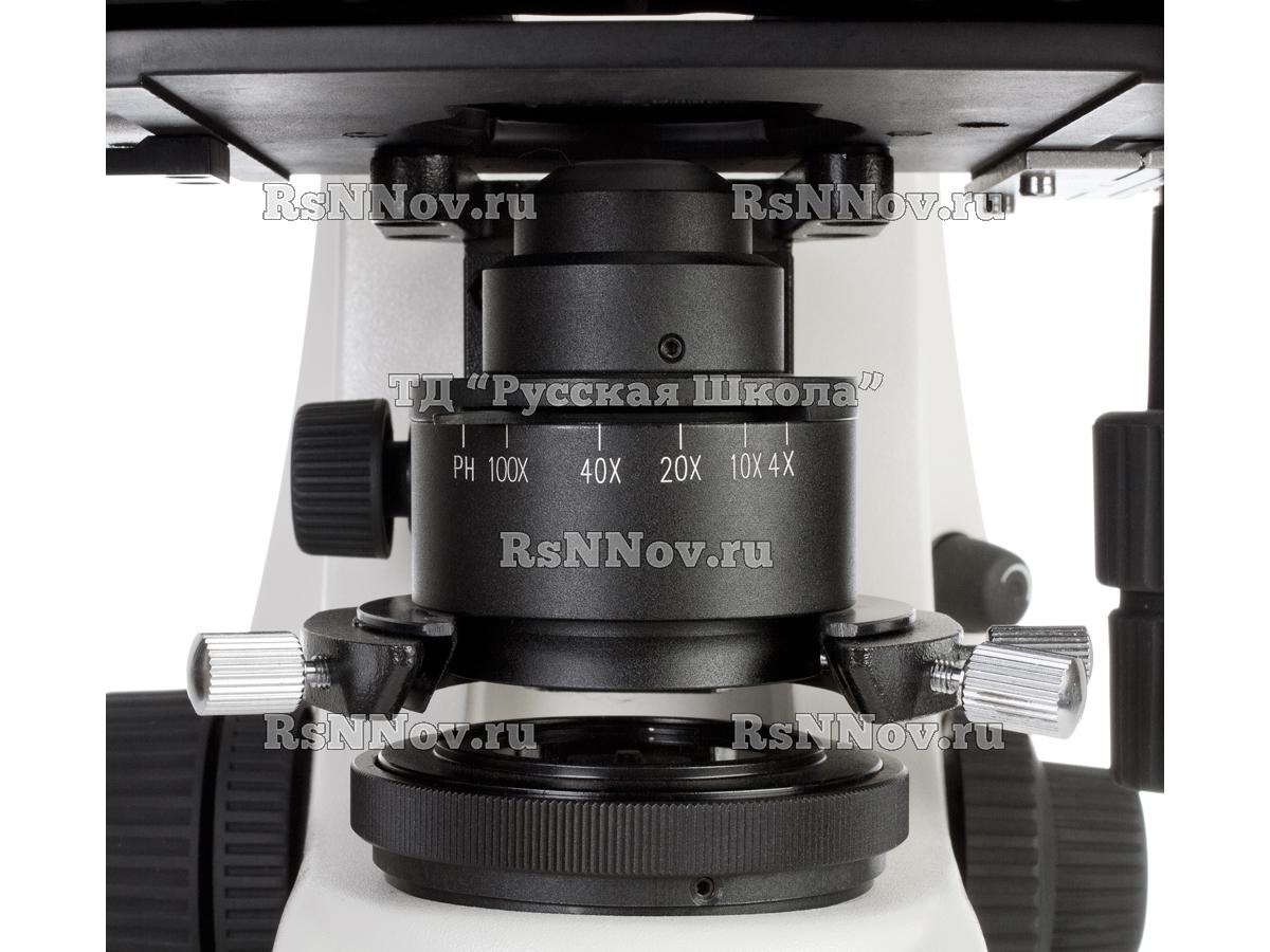 Микроскоп рассчитан на длину тубуса "бесконечность", объективы стандарта DIN, парфокальная высота объективов 45 мм.