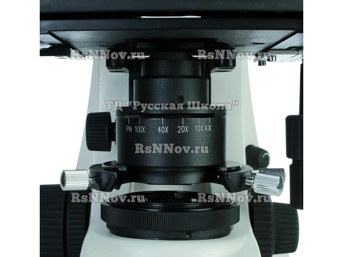 Микроскоп рассчитан на длину тубуса "бесконечность", объективы стандарта DIN, парфокальная высота объективов 45 мм.