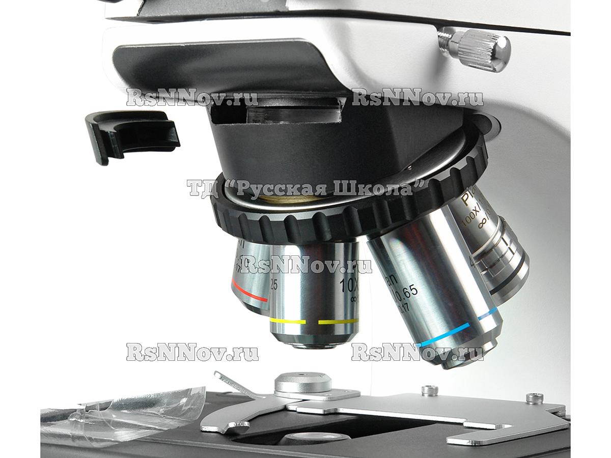 Микроскоп рассчитан на длину тубуса "бесконечность", объективы стандарта DIN, парфокальная высота объективов 45 мм