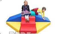 Состоит из 9 элементов различной конфигурации. Верхние детали центрального куба, горок и ступенек усилены фанерой 0,6мм, оклеенной поролоном для безопасного использования. Развивает у детей опорно- двигательный аппарат, фантазию, понятие об устойчивости, объёмно – пространственное и ассоциативное мышление.