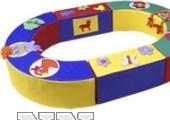 Состоит из 4 отдельных частей, которые скрепляются между собой «липкой» текстильной лентой. На внешней и внутренней поверхности манежа расположены различные многофункциональные детали: молнии, замки-карабины, пуговицы, шнуровки, «косички», застегивающиеся кармашки, разноцветные фрукты, овощи и цифры прикрепляются к поверхности манежа «липкой» лентой. Манеж предназначен для детей раннего возраст. Его можно применять с целью ограничения пространства маленького ребенка, а яркие шнуровки и детали манежа не позволят скучать малышу. Благодаря тому, что манеж состоит из отдельных легких деталей, ребенок может использовать их в игровой деятельности, в конструировании различных построектов, соединять детали и разбирать манеж самостоятельно. Манеж также можно использовать в подвижных играх: по нему можно ходить, через него можно перешагивать, перепрыгивать – в результате чего развивается двигательная активность и координация несложных движений. Яркие цвета деталей манежа, шнуровок, карманов, молний знакомят ребенка с основными цветами. Конечно, деятельность наиболее продуктивна, если она проходит совместно со взрослым, который помогает ребенку совершать пока сложные для него увлекательные действия, говорит и обсуждает все, что происходит.