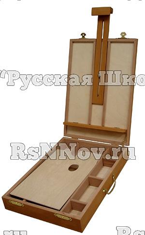 Этюдник-ящик для работы дома и на пленэре с выдвижной штангой и отделениями для красок и кистей.