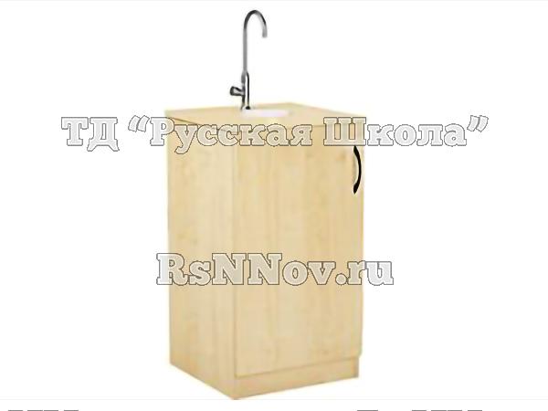 Тумба оснащена водоразборной колонкой и раковиной.